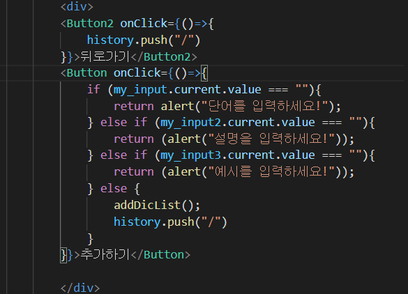 근데 계속 history.push만 실행되고 addDicList는 실행이 안됨...