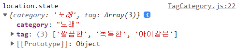 결국은 태그를 선택해서 history.push로 url값에 넣어서 받아오는 걸로 구현중..